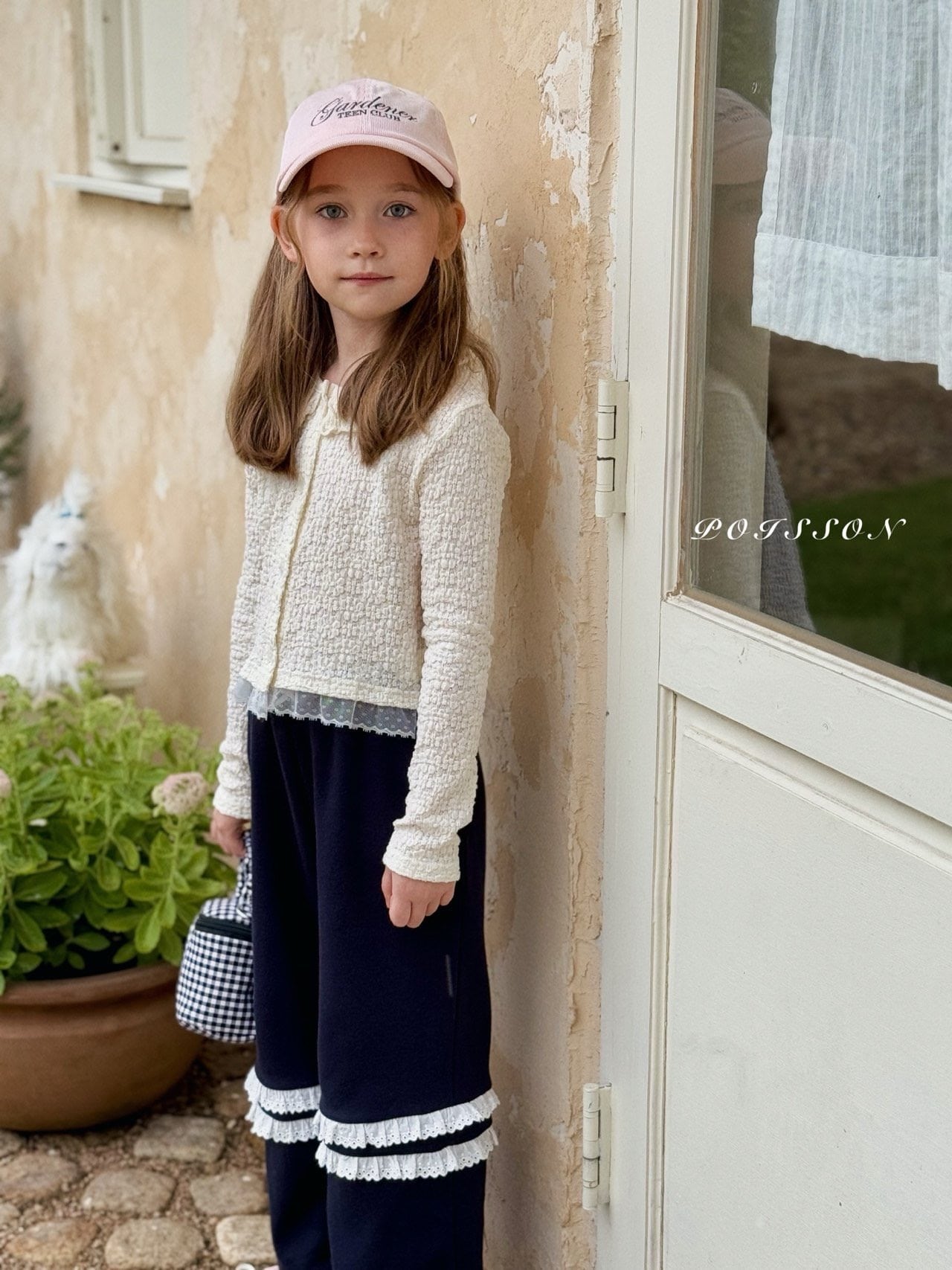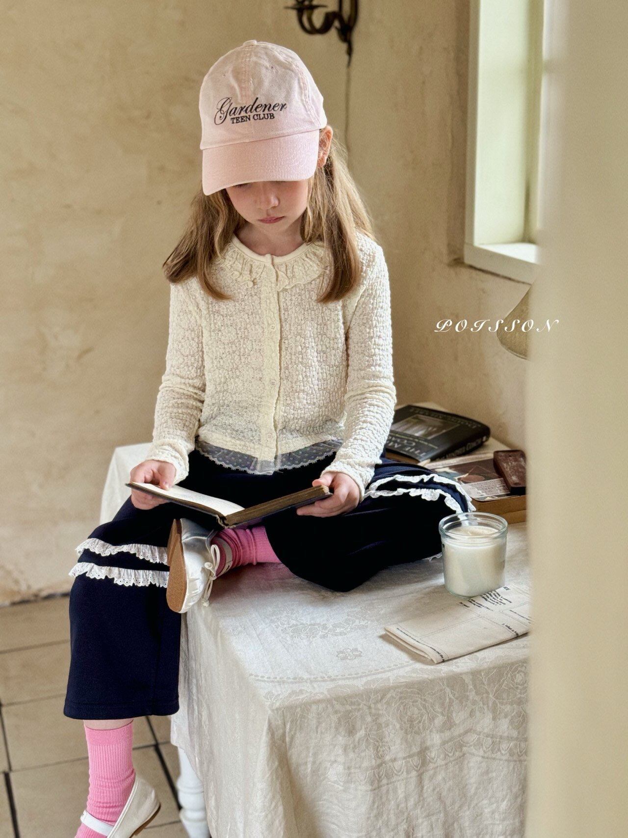 ラブリーなブランドPOISSON(プアソン)のレースカーディガンです。 凹凸ある可愛いレースで作られて襟ぐりのフリルと裾の異素材レースがポイントなおしゃれなアイテムです。 ぜひチェックしてみて下さい。 色:クリーム サイズ:S(90-100)、M(100-110)、 L(110-120)、XL(120-130)