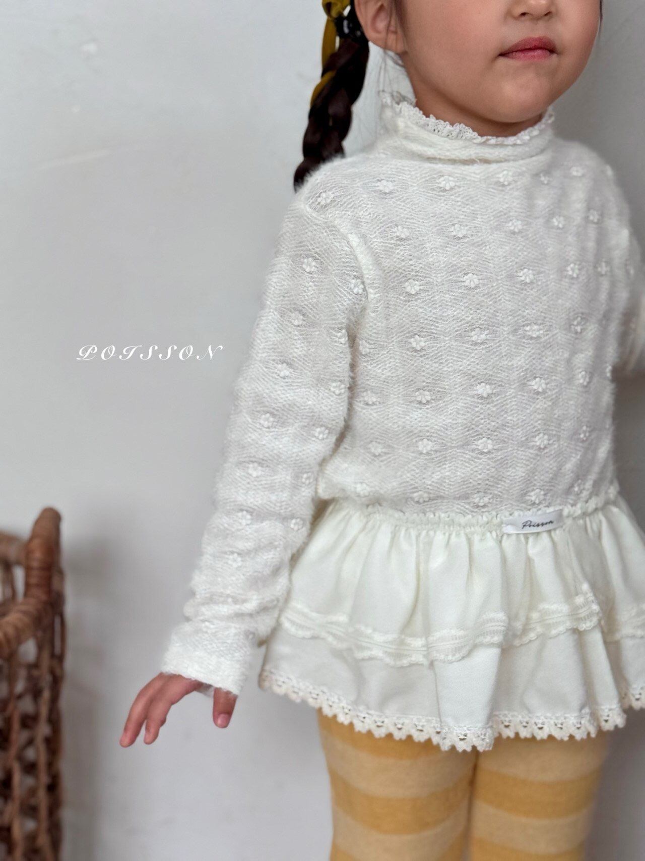 ラブリーなブランドPOISSON(プアソン)のレースTシャツです。 起毛されてる透け感がある可愛いレースで作られてます。 単品で着ても良いし重ねコーディネートでも良いおしゃれなアイテムです。 ぜひチェックしてみて下さい。 色:クリーム サイズ:S(90-100)、M(100-110)、 L(110-120)、XL(120-130)