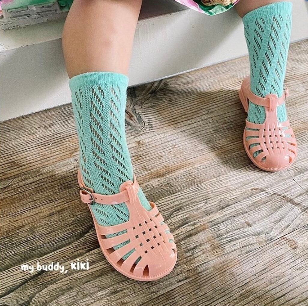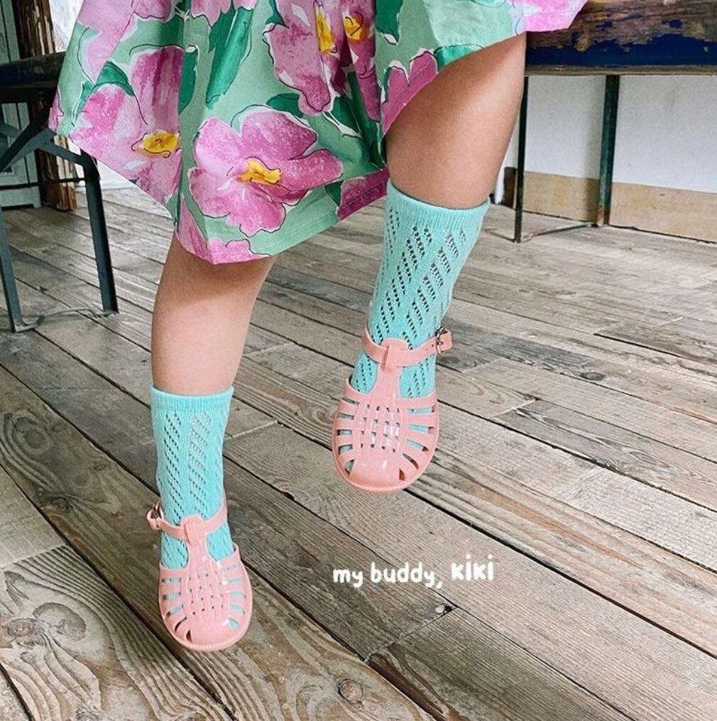 綿混メッシュ素材のソックスです。 カラフルな色が特徴でサンダルやスニーカーに合わせてスタイルアップ。 サイズ:free (オススメの足の長さ12-15cくらい、1-3歳用)