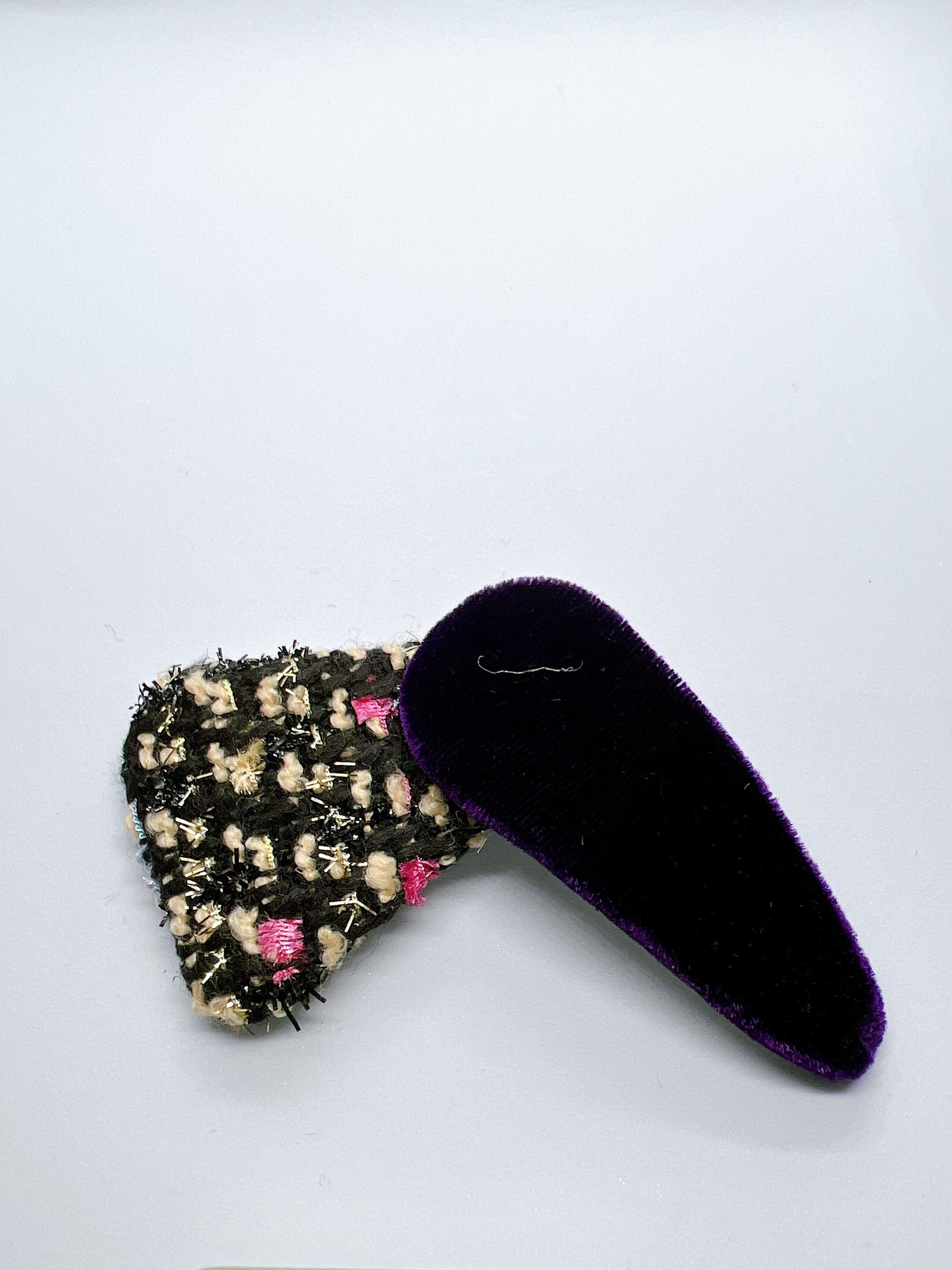 可愛いツイートとベルベットの素材のヘアピンです。5種類のツイートとベルベットの色の組み合わせがすごくおしゃれです。ちょっと大きめなので、ポイントでコーディネートできると思います。 色の組み合わせやサイズは写真をご参考してください。 HP2209-020