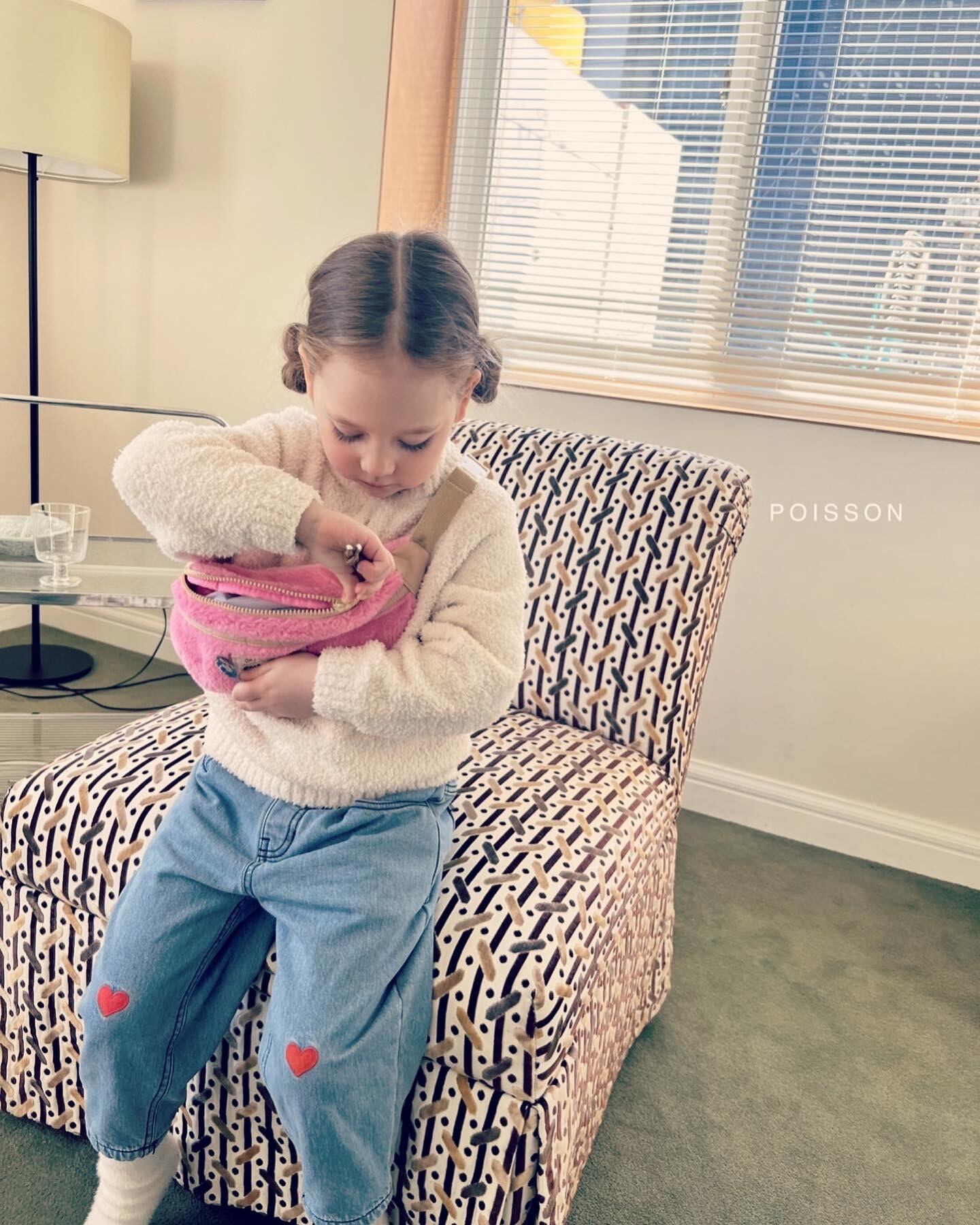ラブリーなブランドPOISSON(プアソン)の スリングバックです。 外遊びの時にチョッピリ物が入り可愛くつけられるアイテムです。 是非チェックしてみて下さい。 色:ブラウン、ピンク サイズ:ヨコ25cくらい、タテ15cくらい、 ヒモの長さ57-38cくらい