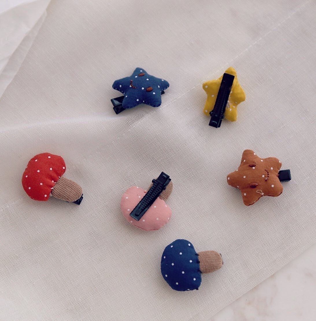 小さいサイズのドット柄ヘアピンです。 星とキノコの可愛い形の2点セットです。 薄毛のお子さんにもつけられます☆ ぜひご覧ください☆ 色:イエロー✖️ピンク ブラウン✖️レッド ネイビー✖️ネイビー サイズ:写真参考にして下さい。