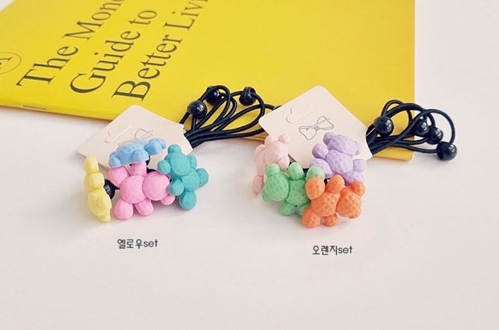 ベア形のヘアゴムです。 宝石見たいなカッティングの 可愛いクマちゃんが特徴の 4点セットのアイテムです。 ぜひチェックしてみて下さい☆ 色:ピンクセット、オレンジセット サイズ:クマのサイズヨコ約2c-タテ約2.5c 紐長さ8c