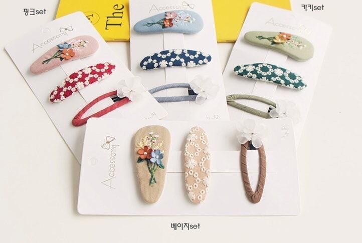 お花をモチーフにした3種類のヘアピンです♪ 刺繍だったり、凹凸感ある白いお花だったり、 3種類それぞれ可愛く使えるアイテムです⭐︎ ぜひチェックしてみて下さい⭐︎ 色:ベージュ、グリーン、レッド、ブルー サイズ:長さ約7.2c 色:薄ピンク、イエロー、スカイブルー、ピンク、パープル