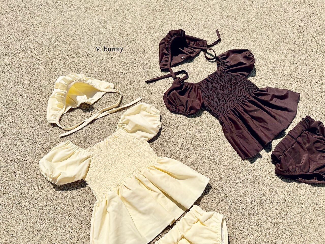 雑貨専門店バニラビー(V.bunny)の水着です。 スモークシャーリングが特徴の ものすごく可愛いリーズナブルなアイテムです。 トップスとボトム、帽子もつけて3点セットです。 *Sサイズで95ですので、ご注意してください。 サイズ:S(95)、M(105)、L(115)、XL(125) 色:イエロー、ブラウン