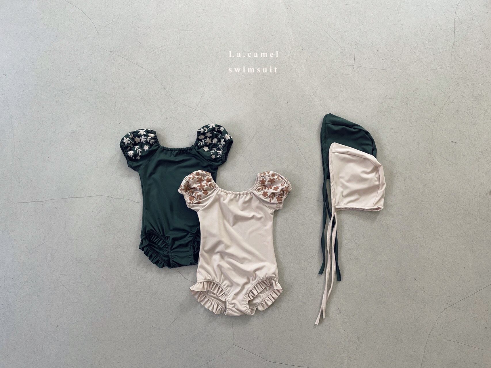 la.camel(ラカメル)の機能性たっぷり! (優れた抗菌効果&消臭効果&吸水速乾&UVカット) coco swim hat(ココスイムハット)です♪ 去年大人気だった、パフ袖にお洒落な花柄刺繍がポイントのワンピース水着とセットの色です。 単品でも可愛いので、ぜひチェックしてみて下さい☆ ・サイズ:bebe(XS,S),kid(M,L) Sサイズ参考サイズ:身長90c、体重13.7kg ・色:ベージュ、カーキ