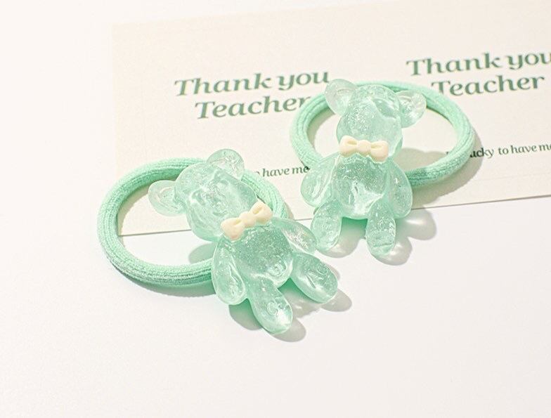 可愛いクマちゃんモチーフにした、2点セットのヘアゴムです♪ クリアな5色の色味がポイントでリーズナブルなアイテムです⭐︎ ぜひチェックしてみて下さい⭐︎ 色:ピンク、パープル、ミント、イエロー、スカイブルー