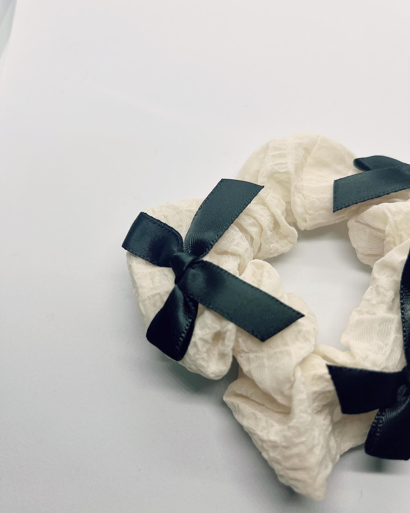 綿素材のシュシュです♪ アイボリーにブラックのリボンが、ブラックにはアイボリーリボンが可愛い組み合わせがポイントのアイテムです。 ぜひチェックしてみて下さい☆ 色:アイボリー、ブラック
