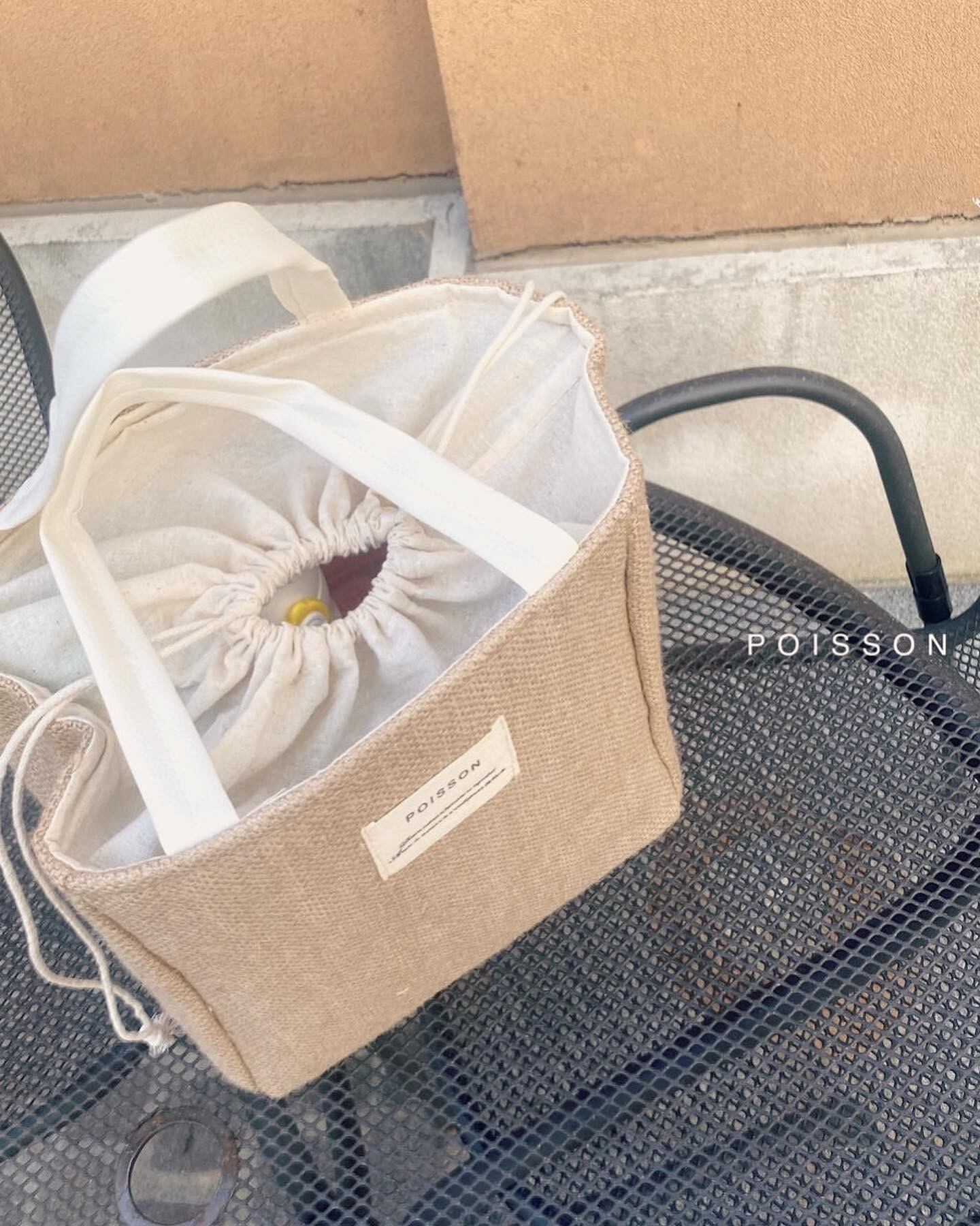 ラブリーなブランドPOISSON(プアソン)の ナチュラル素材で作られた大人気の クーラーバックです。 下が結構広いので、思ったより入ります! ドロストで楽々開け閉め出来ます。 オシャレなバックで夏のお出かけを楽しんで下さい〜 ・サイズ:ヨコ22c、タテ22c、幅16c