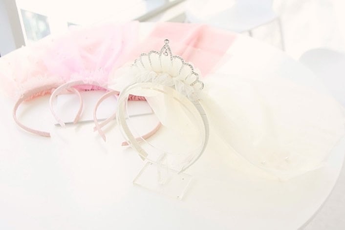 チュールのベールがポイントのカチューシャです。 4色バリエーションでティアラが付いた上品な アイテムです。 おひま様になりたい日のお子さんにどうぞ。 ぜひチェックしてみて下さい。 色:ピンク、コーラル、ピーチ、アイボリー サイズ:ティアラ(ヨコ10.5c、タテ5c) ベール長さ48c