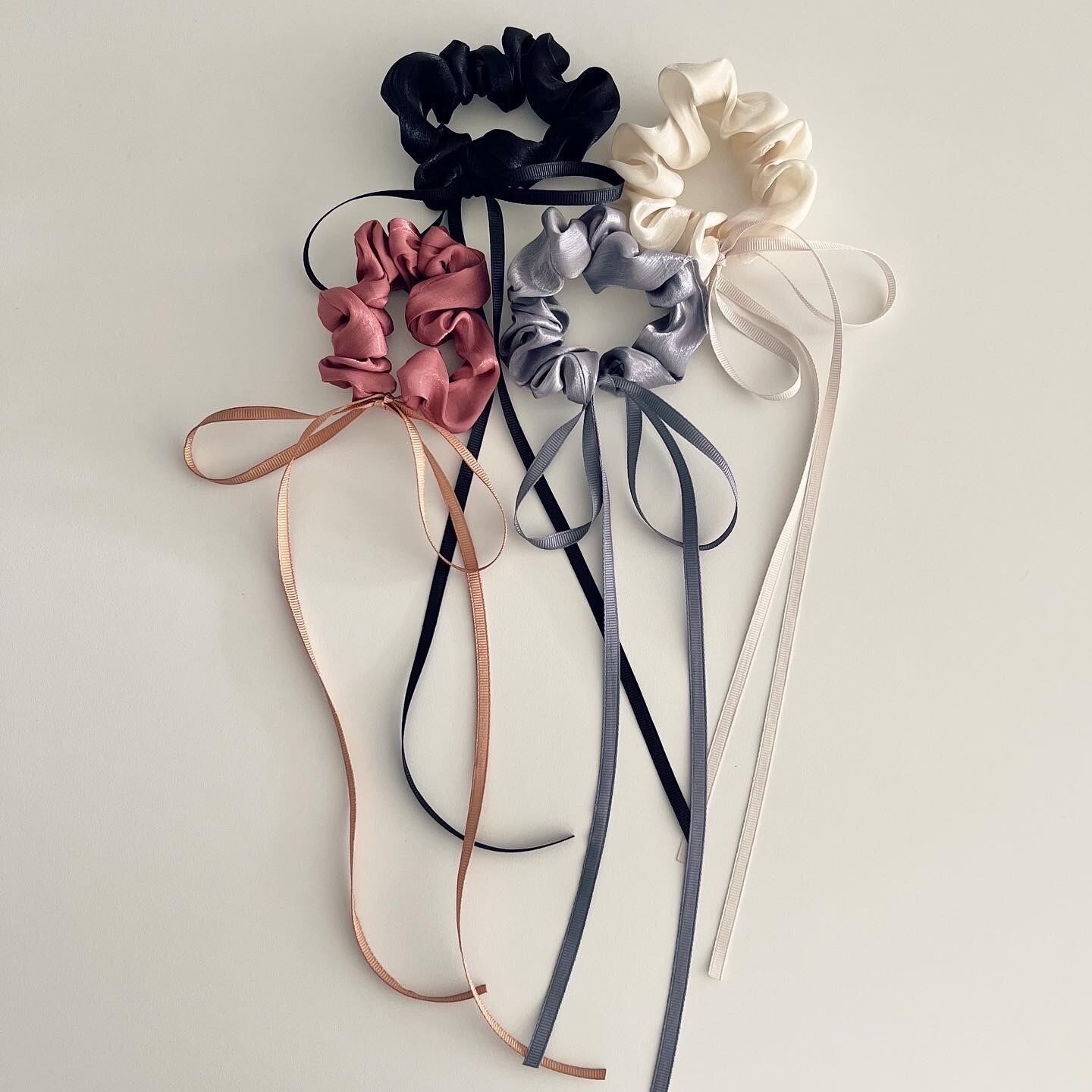大人も使えるオシャレなアクセサリー専門店のダーリア(Dalia)のヘアアクセサリーです。 オシャレゴム+リボンが付いててすごくアレンジし使いやすい優れてたアイテムです。 ぜひチェックしてみて下さい☆ 色:ブラック、アイボリー、ブラウン、グレー サイズ:直行約5c、リボン長さ約40c×2本