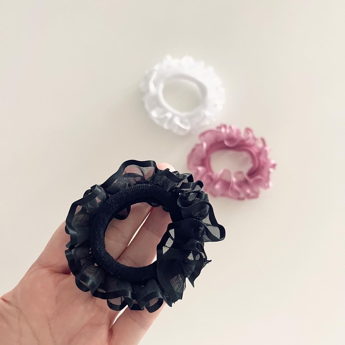 大人も使えるオシャレなアクセサリー専門店のダーリア(Dalia)のヘアアクセサリーです。 シンプルで上品なフリルがついたヘアゴムです。 ぜひチェックしてみて下さい☆ 色:ブラック、off白、濃ピンク、 サイズ:直行約3.5c