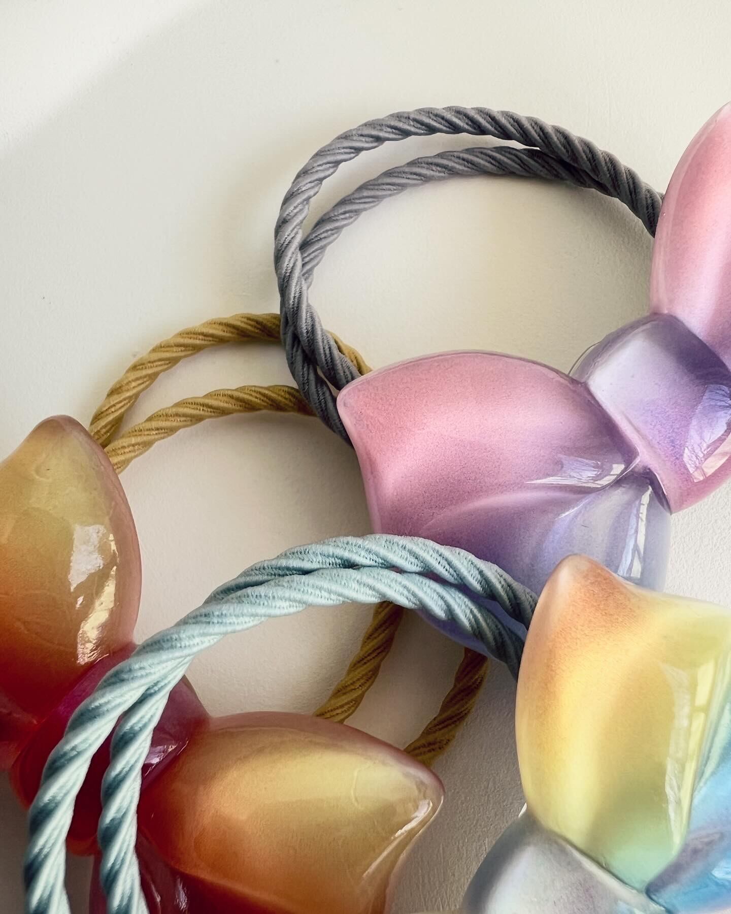 Sand bebeのoriginalシリーズヘアピンです♪ アメのように美味しそうな色味がポイントです。 アメのモチーフは韓国製で作られて丈夫なのが特徴です。 ビックなリボンがとっても可愛くワンポイントでヘアアレンジが楽しめます。 ぜひチェックしてみて下さい⭐︎ 色:パープルアメ、ブルーアメ、ピンクアメ サイズ:リボンヨコ約5c タテ約3c