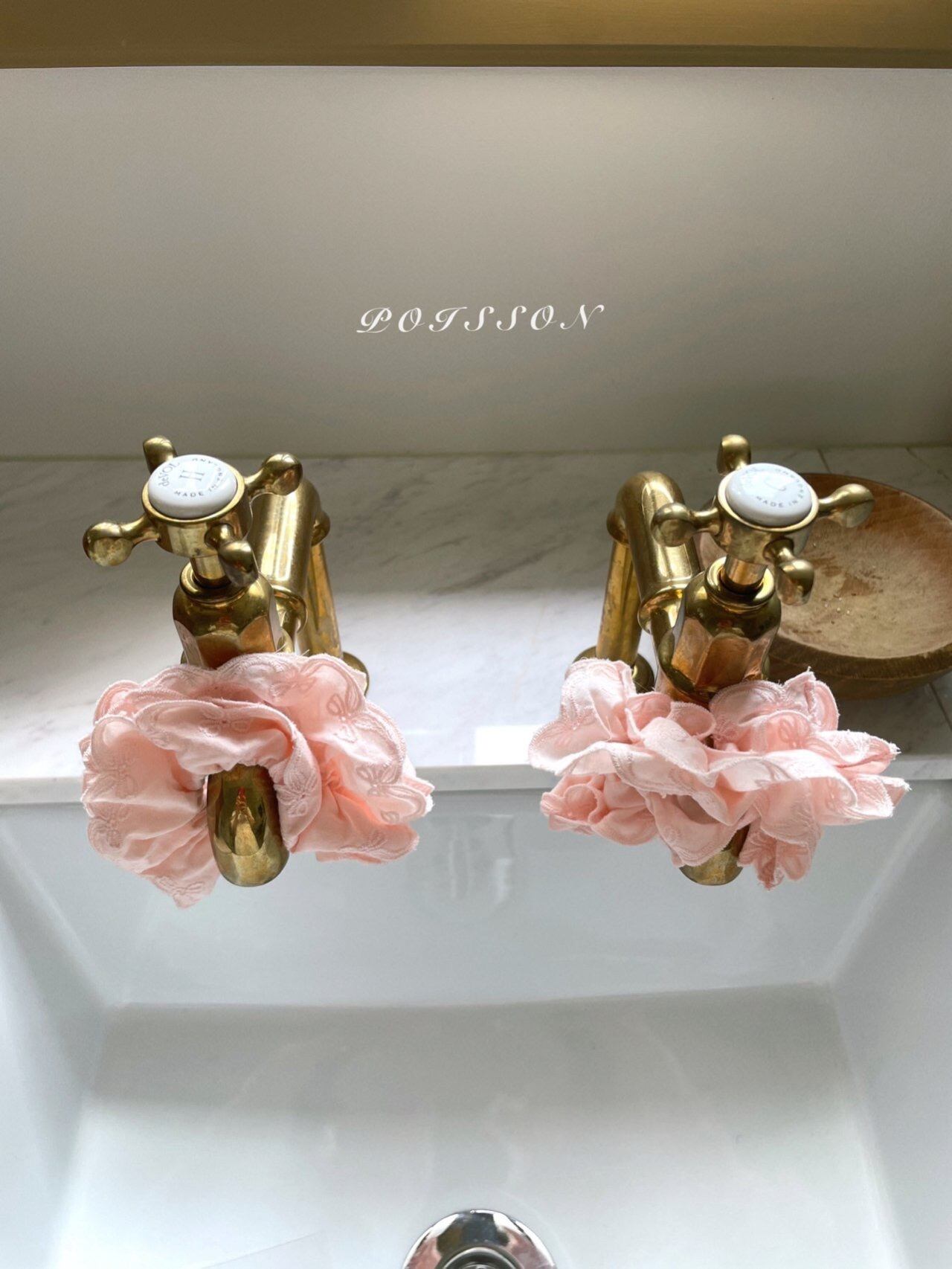 ラブリーなブランドPOISSON(プアソン)の 大人気のヘアアクセサリーシリーズの シュシュです。 綿のレースでリボンの刺繍がとっても可愛いアイテムです。 ぜひチェックしてみて下さい。 セット商品ではございません。 (シュシュ一点の値段です) 色:OFF白、ピンク
